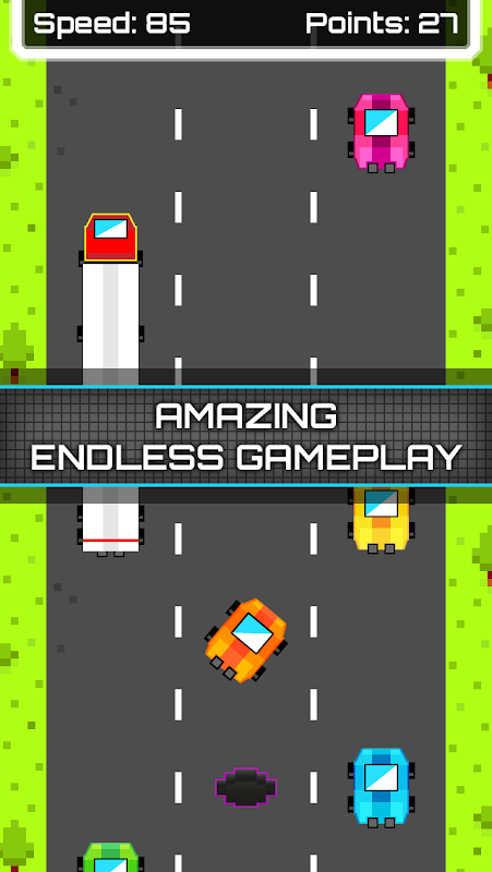 BIT TURBO مسابقه پیکسل اعتیاد آور در یک بزرگراه بی پایان رنگارنگ است.