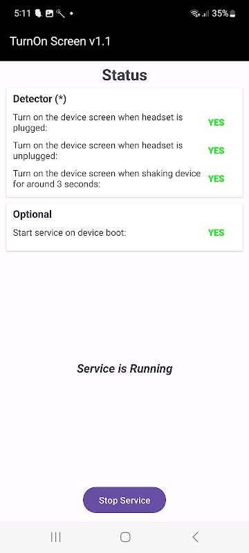 این برنامه را روی دستگاه خود نصب و باز کنید، در صفحه برنامه چندین گزینه برای فعال کردن آشکارساز وجود دارد. شما باید حداقل یک آشکارساز را فعال کنید تا بتوانید با کلیک روی دکمه "شروع/توقف سرویس" در پایین صفحه برنامه، سرویس را شروع کنید.