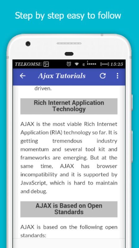 Tutorials for Ajax Offline is a complete application for those of you who want to learn Ajax easily and for free. There are dozens and even hundreds of Ajax tutorials starting to base for beginners to advanced. All these tutorials you can read offline without the need to connect to the internet or mobile data.