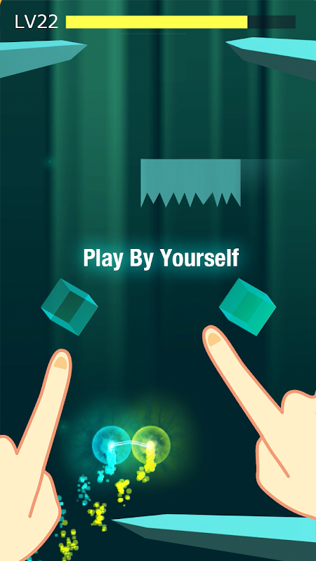Two balls that will move to the left aside when you tapping the left side of the screen, In contrary,they move to the right.Two balls can be connected by lightning and moved to the left and right sides respectively when you hold on two directions