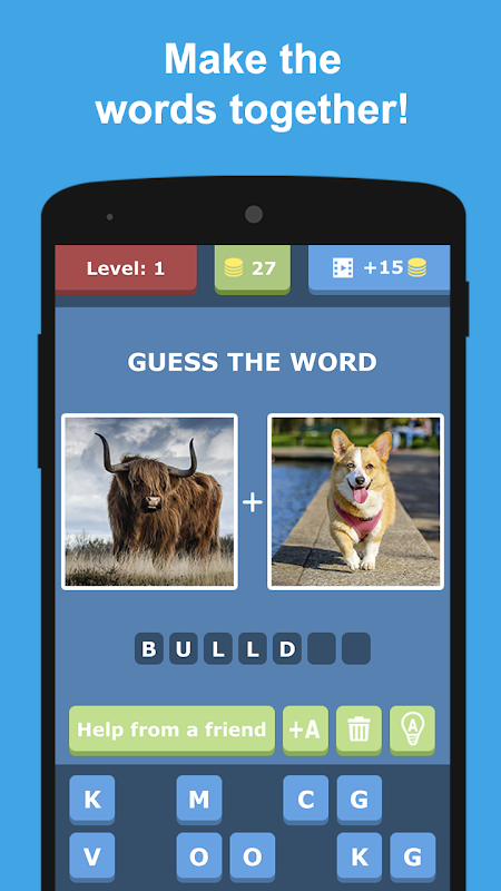 دو عکس بر روی صفحه نمایش که به معنی دو واژه وجود دارد. را کلمات با هم برای به دست آوردن یکی از جدید.