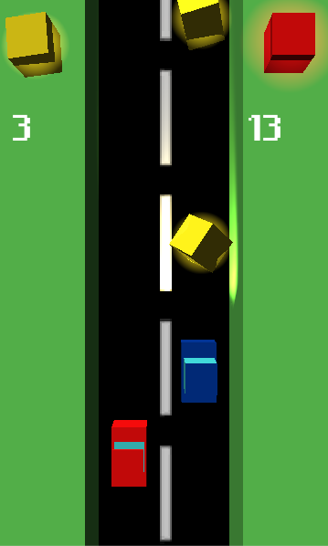 این بازی شامل در اجتناب از اتومبیل های و جمع آوری مکعب طلا.