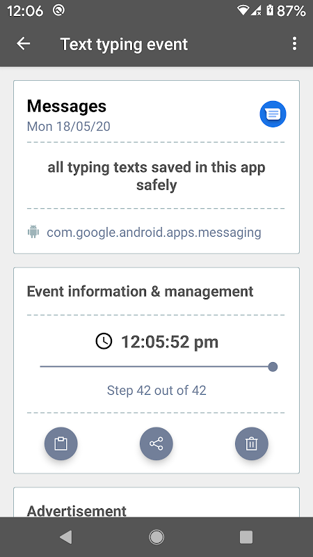 Accidentally deleted typed text? No worry. Typing Saver : Keylogger app for android saved the text for you already.