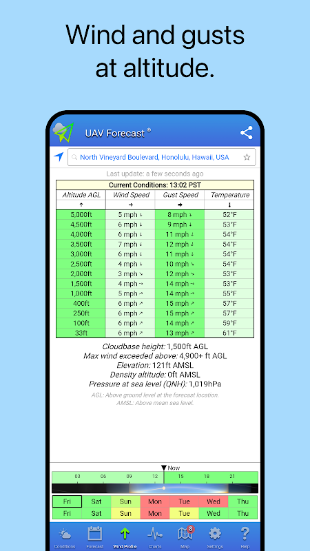• داده های آب و هوای بیش از حد محلی، از جمله سرعت دقیق باد و وزش باد در سطح زمین و در هر ارتفاع.