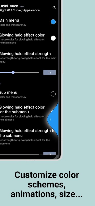 • Choose from four different menus: pie, curve, wave, cursor and customize them to profid your needs