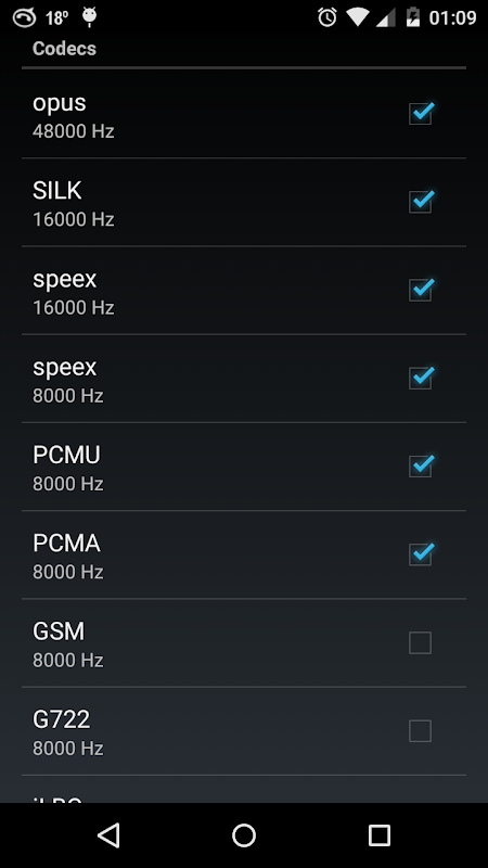-HD audio and rich codec support: G.722 (HD), G.711a/u (PCM), G.729, GSM, speex, SILK, AMR and AAC-ELC (Full HD)