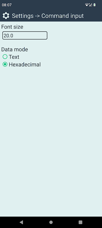 • قالب داده (متن/داده هگزادسیمال) را می توان به طور جداگانه برای صفحه ترمینال و برای ورودی فرمان پیکربندی کرد.
