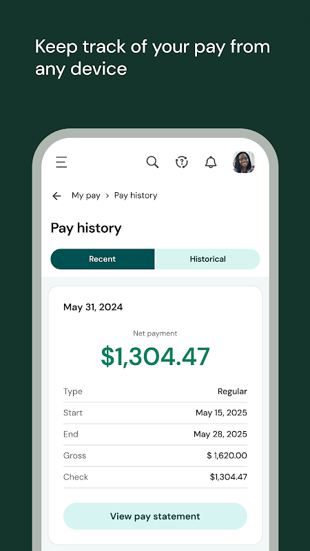 چه در یک سایت شغلی باشید ، چه در جاده ، در خانه یا به سادگی در حال حرکت هستید ، می توانید از طریق دستگاه تلفن همراه خود به آنچه نیاز دارید برسید. شیفت را وارد کنید یا از آن خارج شوید ، حقوق خود را چک کنید ، زمان مرخصی را درخواست کنید ، در مزایا ثبت نام کنید یا کارهای مشابه دیگری را در لحظه انجام دهید.