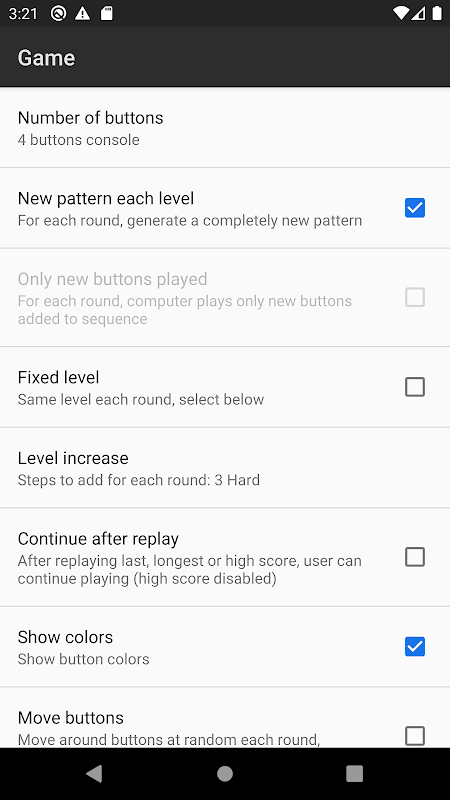 - Hide button lamps (harder, remember sounds)