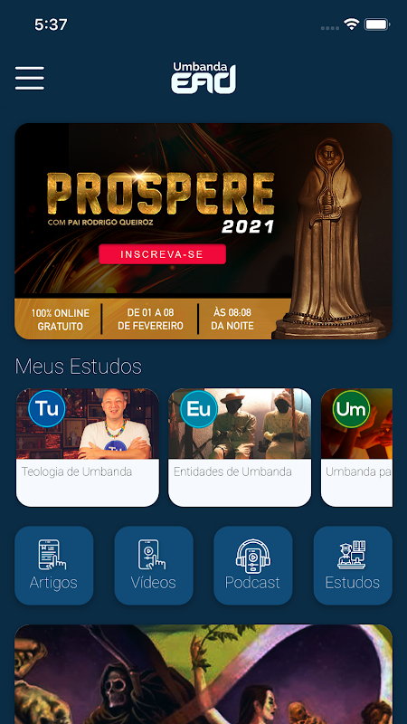 از طریق استفاده از پلت فرم آموزش از راه دور بیشتر بر Umbanda، دانشجویان، حامیان و ذینفعان دسترسی به درس های تصویری دارند، زندگی می کند، کتاب های الکترونیکی، فعالیت های روزانه، و ارتباط با تیم UEAD.