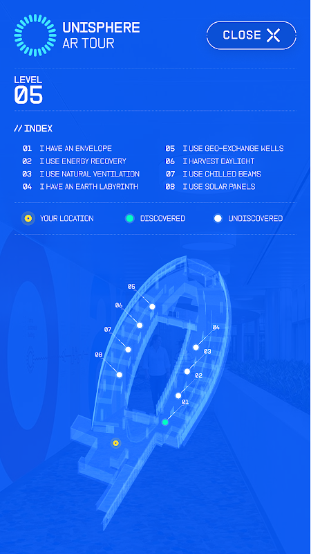 اپلیکیشن United Therapeutics Unisphere Augmented Reality (AR)، راهنمای تعاملی شما برای کاوش در بزرگترین ساختمان بدون انرژی خالص جهان را کشف کنید. این تجربه تعاملی از AR استفاده میکند تا بازدیدکنندگان را در یک تور منحصربهفرد از Unisphere غوطهور کند و فناوریهای پایدار و پیشرفتهاش را به نمایش بگذارد. همانطور که در ساختمان پیمایش می کنید، شبیه سازی های سه بعدی بلادرنگ فضای داخلی را پوشانده و نمای دینامیکی از سیستم های انرژی پیشرفته آن در عمل ارائه می دهد. از آرایه خورشیدی گسترده 3000 پانل گرفته تا 52 چاه زمین گرمایی و هزارتوی زمین در زیر زمین، درک عمیق تری از نحوه هماهنگی این سیستم ها برای دستیابی به عملکردی بدون کربن به دست خواهید آورد. افرادی که قادر به بازدید از سایت نیستند، می توانند دوقلوهای دیجیتالی ساختمان را از خانه کاوش کنند.
