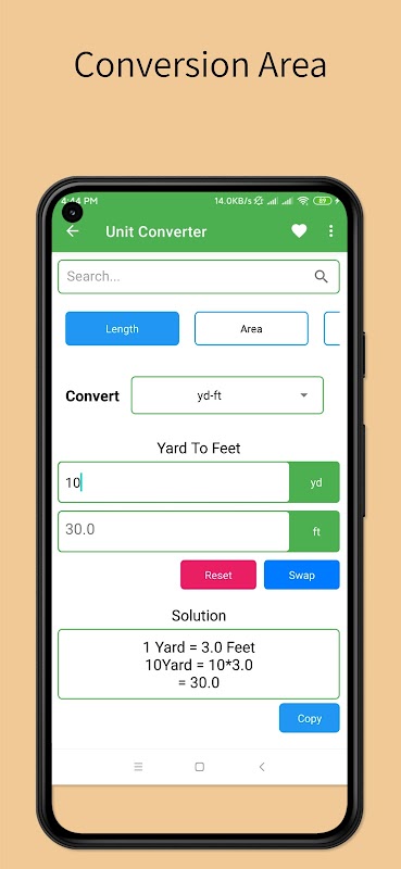 * کاربر می تواند هر تبدیل واحد را در بخش جستجو جستجو کند