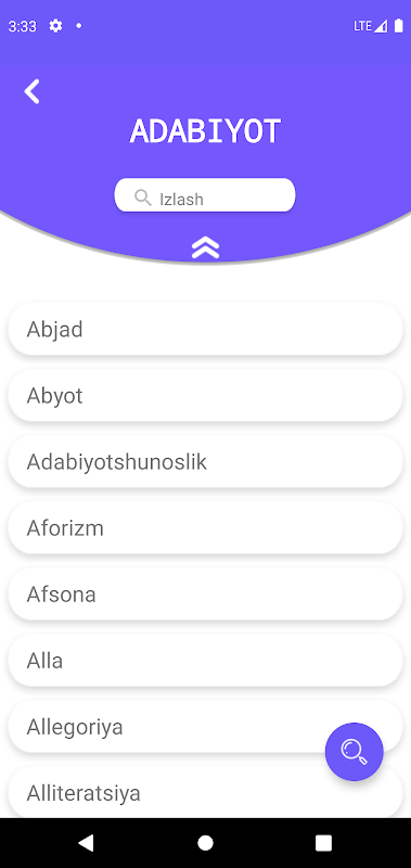 Fanlarda foydalanilgan atamalar ro'yxati va ularni izohlari.