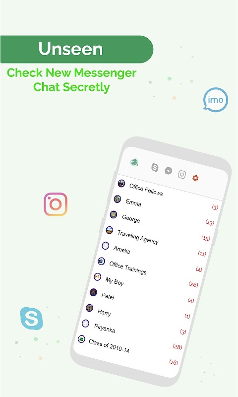 آیا نیاز به خواندن پیام دارید اما نمی خواهید وضعیت توسط فرستنده دیده شود؟ با هیچ خواندن غیبی ، فرستنده پیام شما نمی داند که شما پیام های او را در بسیاری از برنامه های چت از جمله WhatsApp ، Messenger ، Instagram ، Skype ، Facebook ، Viber یا IMO و غیره می خوانید ، بنابراین بدون باز کردن برنامه های گفتگوی اجتماعی کاربر می تواند مشاهده کند همه پیام های Unseen No Last خود خوانده شده است.