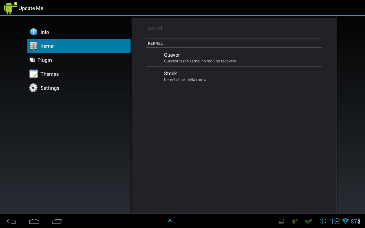 - Show list of kernel which can be downloaded, download it and reboot to recovery (works)