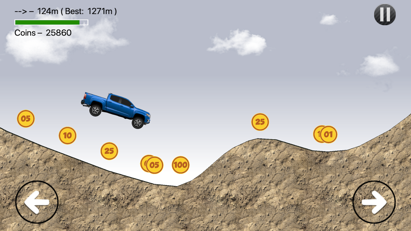 UpHills 4x4 is a game of 4x4 trucks. Your goal is to drive as far as you can, without running out of fuel or overturning your vehicle.