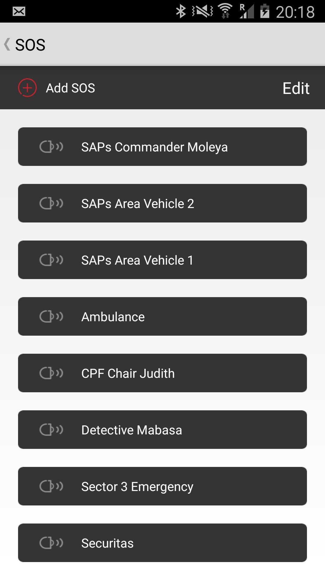 SOS: Contact Police, Ambulance or Firefighters instantly.