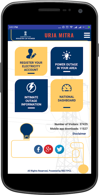 Urja Mitra is an initiative of Ministry of Power,Govt. of India which provides Outage Management and Notifications Platform for dissipating the outage information to power distribution consumers across India through SMS/Calls/push notifications.