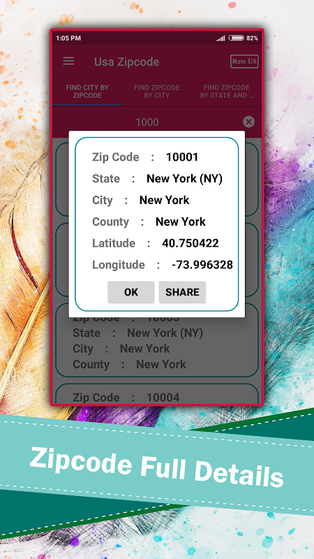 USA Zip Codes Search Offline app will allow you to find a postal code with in the USA. It is quick and fast. You can search zip code information by below three methods.