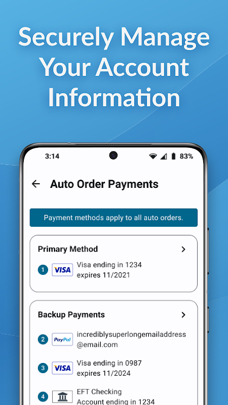اشتراک خودکار خود را کنترل کنید و با مدیریت سفارش خودکار خود مستقیماً از تلفن هوشمند خود، راحتی نهایی را تجربه کنید. این برنامه با طراحی ساده و رابط کاربر پسند، قدرت سفارشیسازی سفارش محصول و سازگاری با روال سالم شما را در دستان شما قرار میدهد.