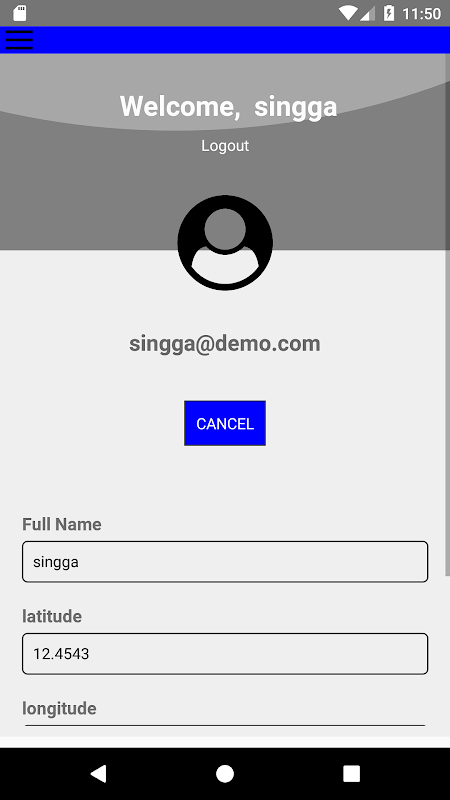 This is sample app to show you user profile in working process in react native. user can register their profile with name , email and password. then user can login with email and password. after successfully login user can edit their name, address and many more details.