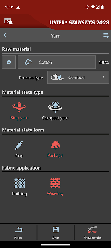 USTER® STATISTICS زبان کیفیت رایج برای صنعت نساجی به عنوان پایه ای برای تجارت نخ و پایه ای برای معیار کیفیت در کل صنعت است. در سراسر زنجیره نساجی، از تولیدکنندگان نخ و مشتریان آنها گرفته تا تولیدکنندگان ماشین آلات، و همچنین فنآوران و دانشجویان، معیارها برای تسهیل ارتباطات در مورد سطوح کیفیت استفاده میشوند. اکنون، کاربران می توانند به سادگی با نصب برنامه USTER® STATISTICS به تمام مزایای این منبع حیاتی دسترسی داشته باشند.