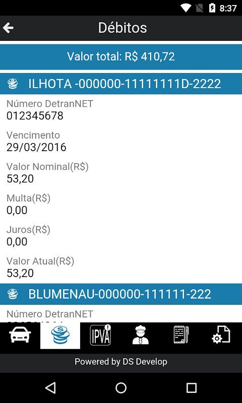 ما هیچ ارتباطی با سیستمهای دولتی نداریم، ما فقط جستجوی دادههایی را که از وبسایت Detran ایالتهایی که به آنها خدمات میدهیم، خودکار میکنیم تا تجربه کاربری بهتری در برنامه تلفن همراه داشته باشیم.