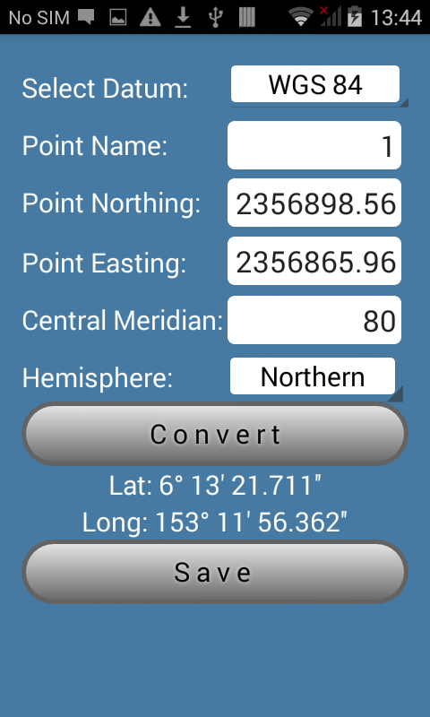 Convert Geographic coordinates to UTM coordinates in various datum.