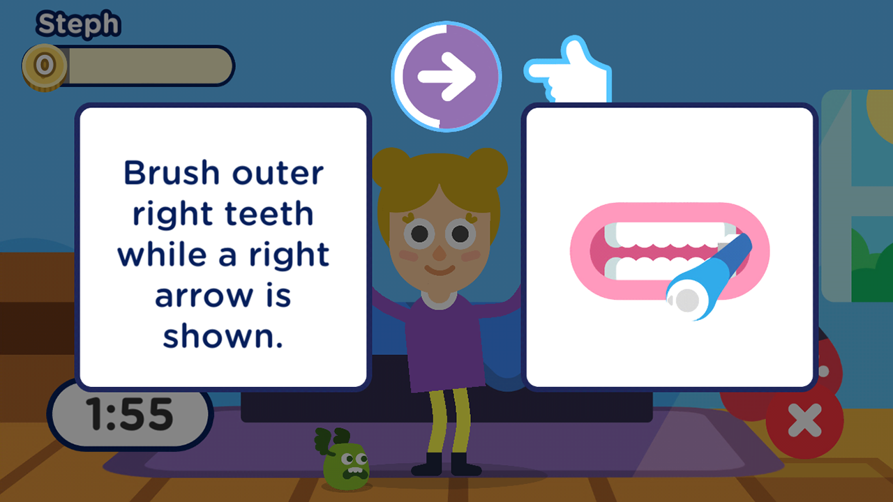 Enter the musical world of Utoothia and control your dancing characters using your Playbrush. Dance off with siblings in a thrilling multiplayer adventure. Collect coins in games and use them to unlock customisations and super dance move. Unlock rewards, new dancing venues and great music by brushing regularly.
