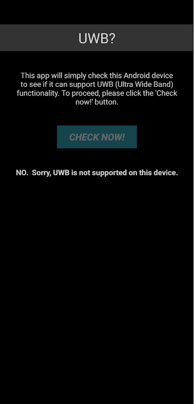 آیا نمی دانید که آیا تلفن / تبلت شما ممکن است از عملکرد UWB پشتیبانی کند؟ برخی انجام می دهند، برخی نمی کنند. این برنامه آن را برای شما تعیین می کند. نیازی به روت نیست