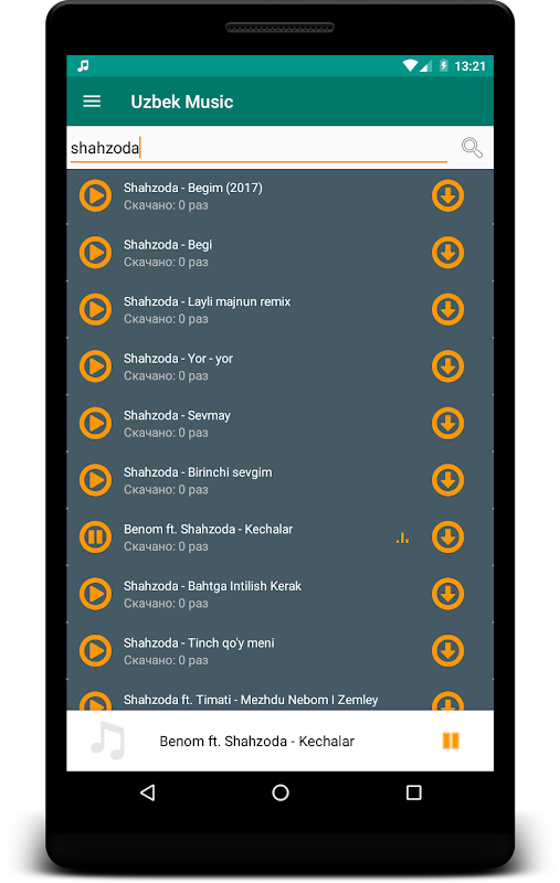 Ўзбекистоннинг энг янгилар ва энг машҳур кушиклар бир иловада. бепул скачивай mp3 турли металлар қотишмасининг ўзига мобил телефон. Фойдаланасиз қулай излаш билан учун севимли хиты топиш ўзбекча тилдасига. Фақат энг яҳши ўзбекча музика!