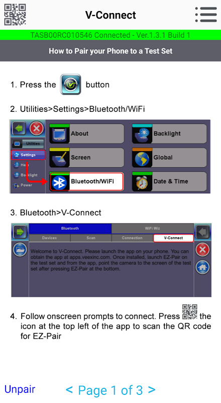 This app will allow the user to achieve network connectivity for the test set, using an Android device’s Portable Wi-Fi hotspot feature. Additional features include Geotagging test results.