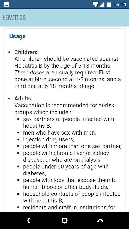 این برنامه برای متخصصان بهداشت و دانش آموزان طراحی شده، با این حال هر کسی علاقه مند به دانستن انواع مختلفی از واکسن ها، برنامه ها، موارد تجویز و عدم خود را پیدا خواهد کرد این برنامه بسیار مفید است.
