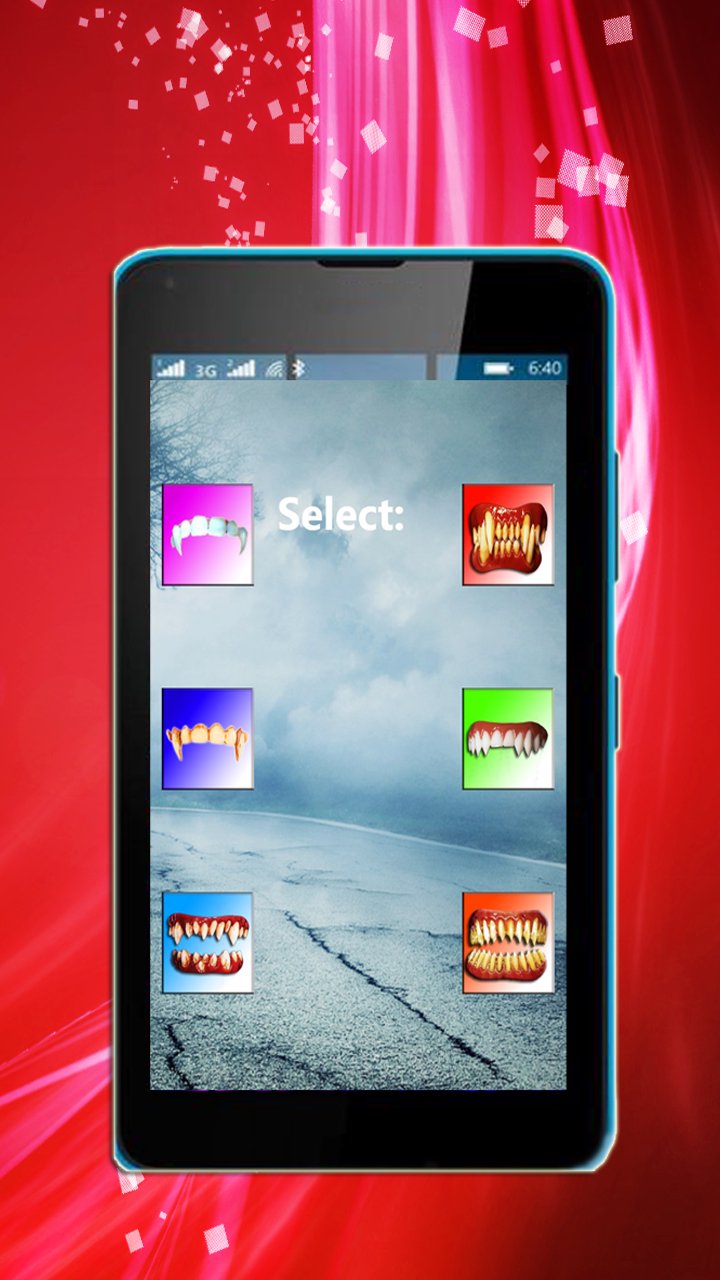 Vampire Fangs are available to you in this simulator! Make the best photo with the image of a vampire and amuse yourself and your friends. On your screen there two kinds of teeth, you can choose your own version. Clean and beautiful young vampire teeth or do you want to look like an ancient werewolf? Vampire Fangs in the photo will please fans of mysticism and those who like to make beautiful pictures of the Gothic theme. Your device will become a source of fun for your friends and relatives, who will be able to choose their teeth, depending on their nature. If you like stories about vampires and grim book about vampires, you can do two photos with your friend with various vampire teeth. You can look like werewolves. This simulator allows you to make very trendy photo in the vampire style, check it out yourself!