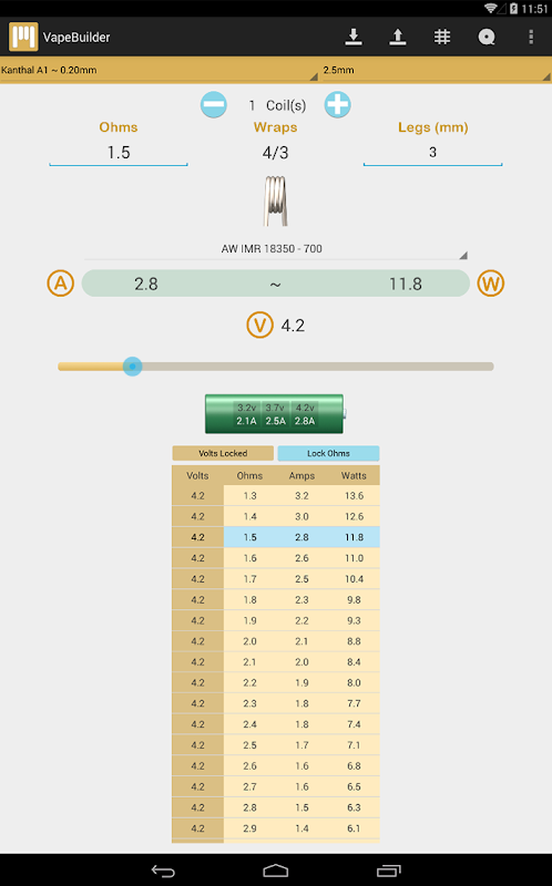 به Vape ساز در ساخت کویل برای استفاده در اسپری rebuildable کمک می کند. این اجازه می دهد یک مقاومت هدف مشخص برای سیم پیچ، نوع سیم و قطر سیم پیچ ساخته شود، آن را پس از آن شما تعداد مورد نیاز کاری ادامه داده اند برای مطابقت به عنوان نزدیک که ممکن است مقاومت هدف نشان می دهد.