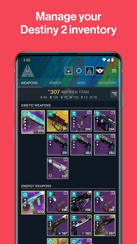موجودی Destiny 2 خود را مدیریت کنید، بارگذاری کنید و پیشرفت بازی خود را پیگیری کنید!
