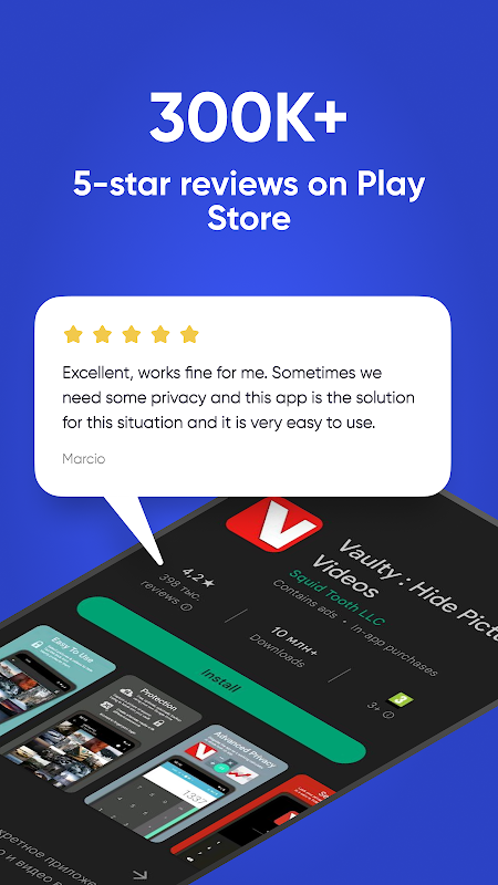 ★ ★ ★ ★ ★ "برای افرادی که فیلم های خصوصی یا تصاویر خصوصی در تلفن خود دارند Vaulty می تواند یک نجات دهنده زندگی باشد." - BlueStacks