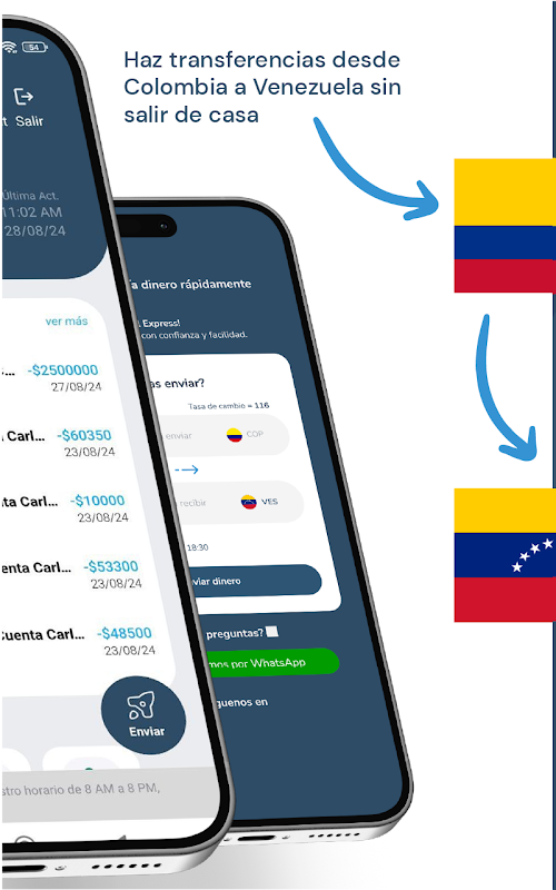 ما خوشحالیم که می توانیم هر کجا که بروید شما را همراهی کنیم ، با برنامه جدید Venecol می توانید با دسترسی به یکی از بهترین نرخ های بازار و کمترین زمان انتظار ، پول را به ونزوئلا ارسال کنید.