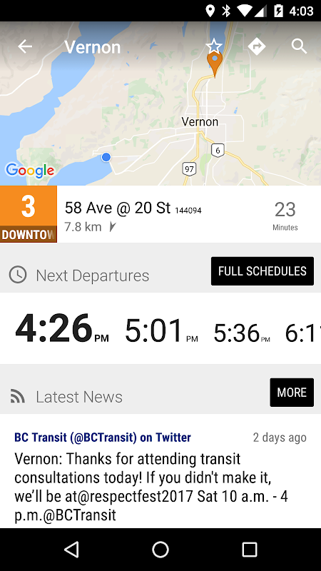 این برنامه برنامه اتوبوس ها و اخبار را ازBCTransit در توییتر ارائه می دهد.