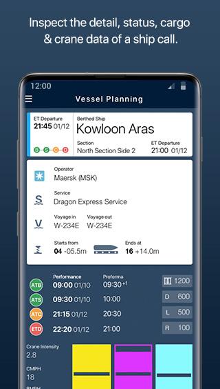 نمای تفصیلی اطلاعاتی مانند اسکله برنامه ریزی شده / واقعی ، اطلاعات زمان (ETA ، ETC ، ETD ، ATA ، ATD) ، جرثقیل های برنامه ریزی شده و واقعی را برای تماس تلفنی فراهم می کند.