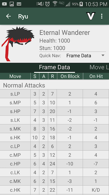 VFrames gives you the knowledge you need to be prepared for your next Street Fighter V match, whether it's online against the world or on a stage in front of thousands of spectators. All of this is provided in the package the Fighting Game Community deserves: premium quality, free of ads, and completely free to use.