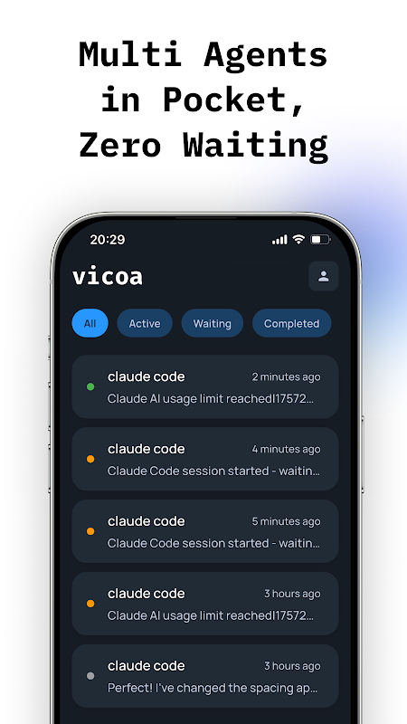 Vicoa همراه شماست برای کلود کد، کدکس و اوپنکد، طراحی شده تا شما را در هر کجا که هستید، کنترل و جریان کاریتان را بدون وقفه حفظ کند. عاملهای کدنویسی هوش مصنوعی خود را از راه دور کنترل کنید و مهندسی عاملمحور را در هر کجا انجام دهید.