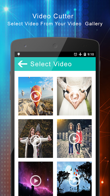 Wanna cut or trim any video file?This video trimmer is best video editor for Video trimming,cutting and Video Editing.You can also share your videos with your friends directly through the app.Trim song using Video Editor.Supports all standard video formats including AVI, MOV, WMV, VOB, MP4, FLV, 3GP, FLV and many more.