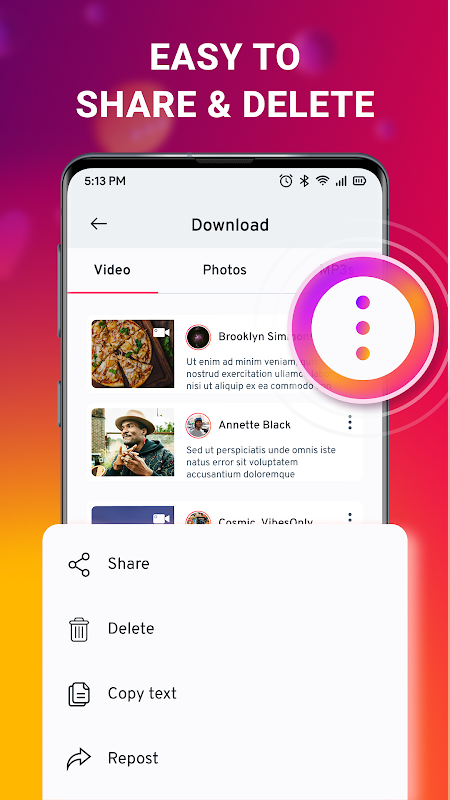 📌 Post on Video Downloader - Story Saver and repost them with hashtags and captions