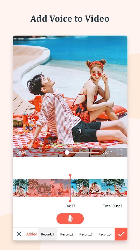 - Customizable sound: two bars for adjusting the original video volume and the music volume.
