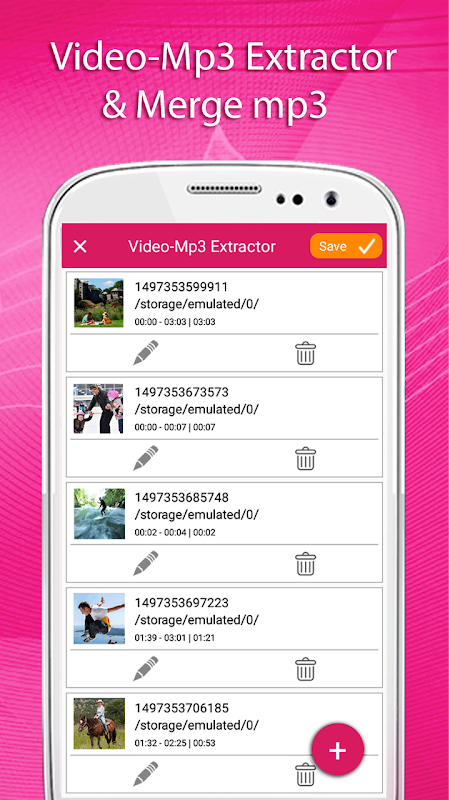 این برنامه هر پرونده ویدیویی را به پرونده های صوتی تبدیل می کند. با استفاده از این Extractor Video-Mp3 ، Video-mp3 ادغام می توانید بخش مورد علاقه آهنگ ویدئویی خود را برش داده و آن را به عنوان File Music خود ذخیره کنید. با استفاده از این Extractor Video-Mp3 ، Video-mp3 می توانید فیلم های مورد علاقه خود را به راحتی در یک فایل mp3 جدا کنید.