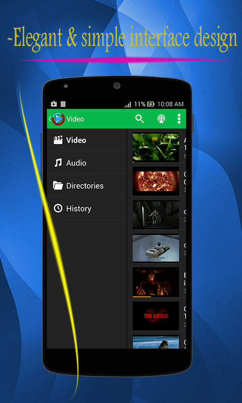 یک دستگاه پخش ویدئو زرق و برق دار با کیفیت تصویر بالا و بهترین تجهیزات. HD پخش ویدئو ارائه می دهد که محیط های دیدنی و جذاب ترین به عنوان مورد نیاز است. بسیار آسان برای استفاده. موسیقی، فیلم و فیلم ها را می توان در یک راه بسیار راحت تماشا. سرعت دستگاه اسکن. ابزار بسیار مفید و کارآمد می باشد. شما می توانید به موسیقی در یک راه آسان گوش. دستگاه پخش ویدئو برای آندروید فراهم می کند بهترین تجربه. دستگاه پخش رسانه ای و ویژگی های پخش MP3 در دسترس است. شما می توانید فیلم ها را در راه آرام قرص و تلفن خود را تماشا کنید. HD پخش ویدئو است بسیار امن و حل و فصل.