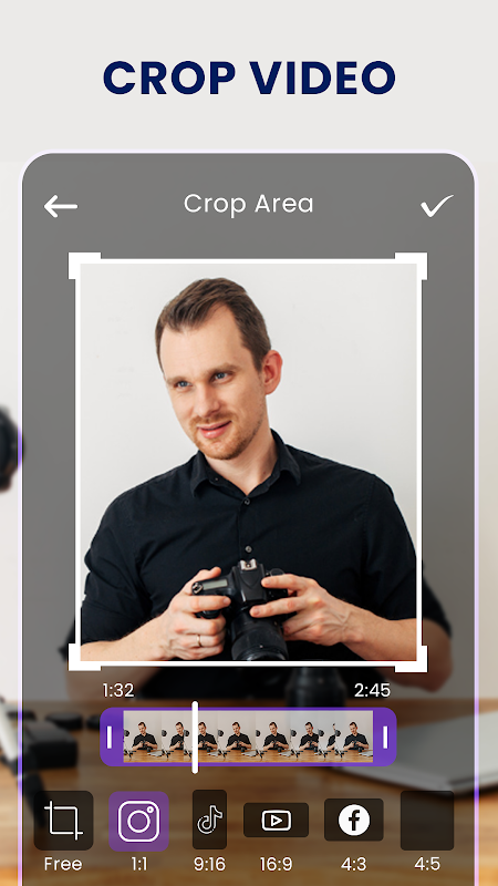 ⬇️ رسانه های اجتماعی مختلف نیازمندی های ویدیویی متفاوتی دارند. اکنون میتوانید به راحتی با برنامه تغییر اندازه ویدیوی خود را تنظیم کنید. برای تنظیم ویدیو برای رسانه های اجتماعی مانند اینستاگرام، فیس بوک، یوتیوب و تیک تاک، اندازه ویدیو را تغییر دهید و وضوح تصویر را تغییر دهید.