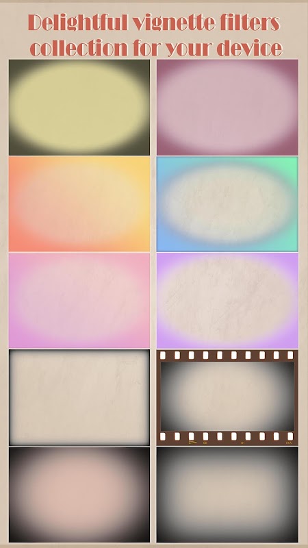 Do you like retro photo effects and color effects? Do you want a picture editing app that can offer you something more popular than photo stickers and photo collages? We suggest you download a vignette photo maker called “Vignette Photo Editor” 📷 “Camera Filters and Effects”. Vignette is a popular photo effect similar to vintage photo filters. In this free pic editor, you will find photo effects that may look like photo frames, but they are much more than that. This picture editor is perfect, if you want to edit images and use the latest photo effects. This “vignette app” offers many effects for pictures that are like soft effects. Apart from black or white vignette, this photo software offers photo effects of many colors. Download Vignette Photo Editor 📷 Camera Filters and Effects and edit photos for free. Use your selfie camera to snap a pic and choose a cool vignette photo filter to decorate your image. Edit pictures, create cute photography and use them as your new background image!