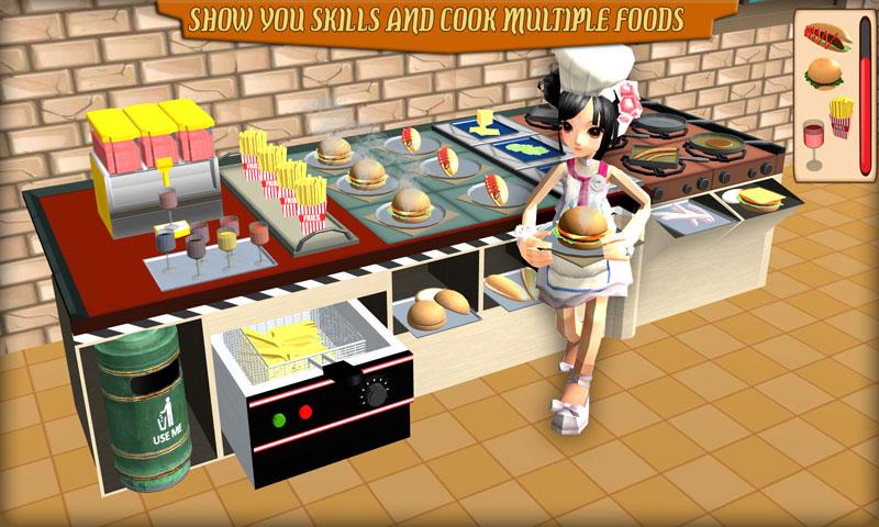 Ozone Studios present brand new 3D cooking simulation games to give all super Chef cooking games & virtual cook simulation lover new Restaurant kitchen cooking experience in Virtual Chef Cooking Simulation. Going to cafe for food is now a bit odd one, Virtual Kitchen cooking games for girls has perfect Virtual kitchen Restaurant to sharpen food chef’s fine cooking skills who wants to own world famous top restaurant one day. Nasreen is the virtual chef in our virtual cafe. Play the role of 3D Virtual Chef and cook delicious food to become world best chef of top new cooking games for girls. Play Virtual Chef Cooking Simulation & begin your Fast Food Restaurant’s cooking journey from being kids food chef to master cooking chef.